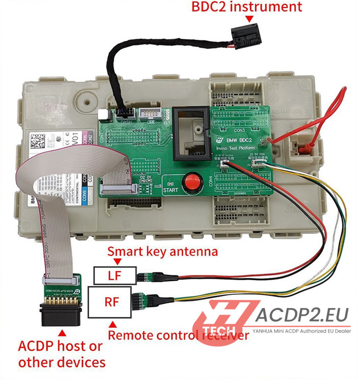 Make sure ACDP host, Yanhua ACDP BMW BDC2 Keys Learning Bench Platform, Smart Antenna and Remote Control Receiver, and BDC2 instrument are connected properly