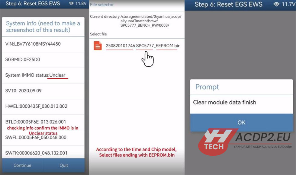Select “BmwImmo.bin” and check if the IMMO data is correct