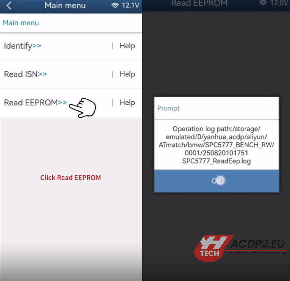 Read and save EEPROM data (file must end with “EEPROM.bin”). Note the file path, date, time, and chip model.