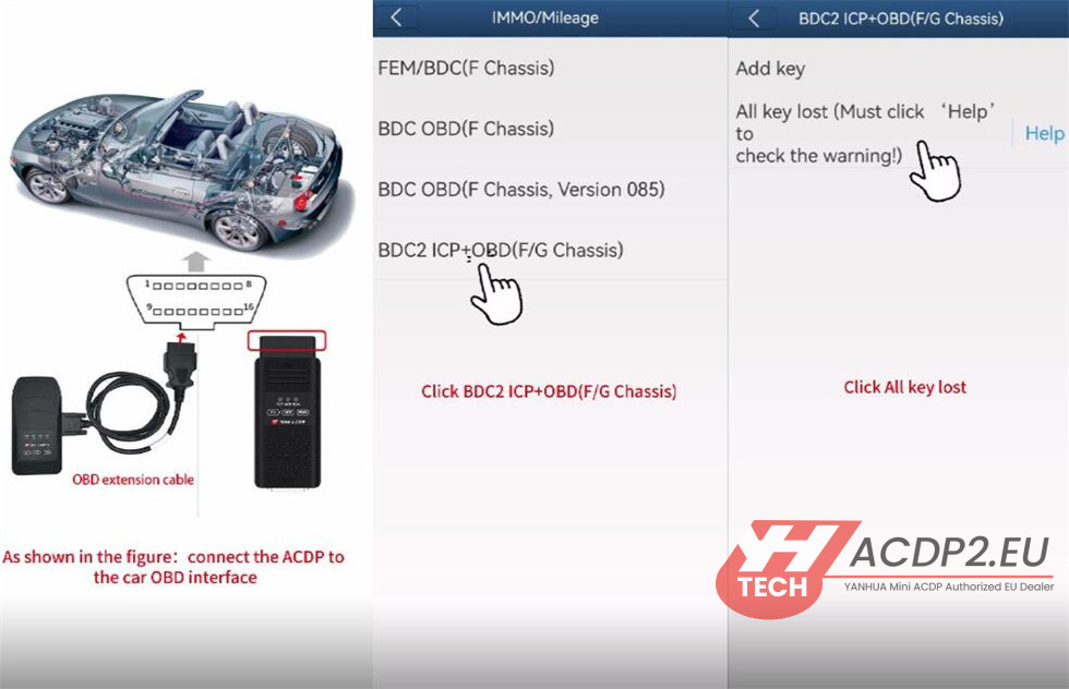 This guide outlines the procedure about restoring original IMMO data for BMW G Series BDC2 module using Yanhua Mini ACDP/ACDP2 with Module 38 and AKL bench test platform after all keys lost programming. Performing an all-keys-lost operation changes the original IMMO security password and locks the BDC2 module. As a result, previously programmed keys (including dealer/ordered keys) will become invalid, and no new keys can be added until the module is restored.