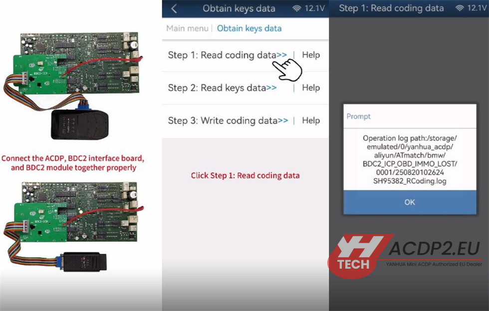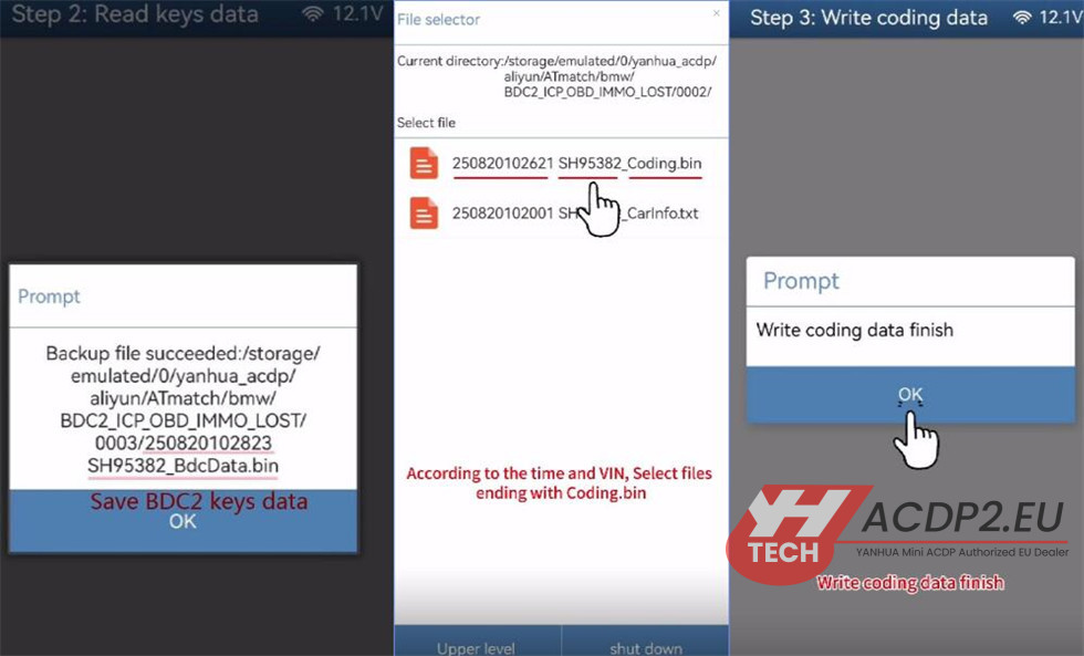 Select “Obtain keys data,” read coding data, and save it (file ends with “Coding.bin”).