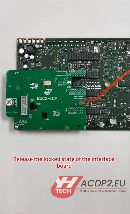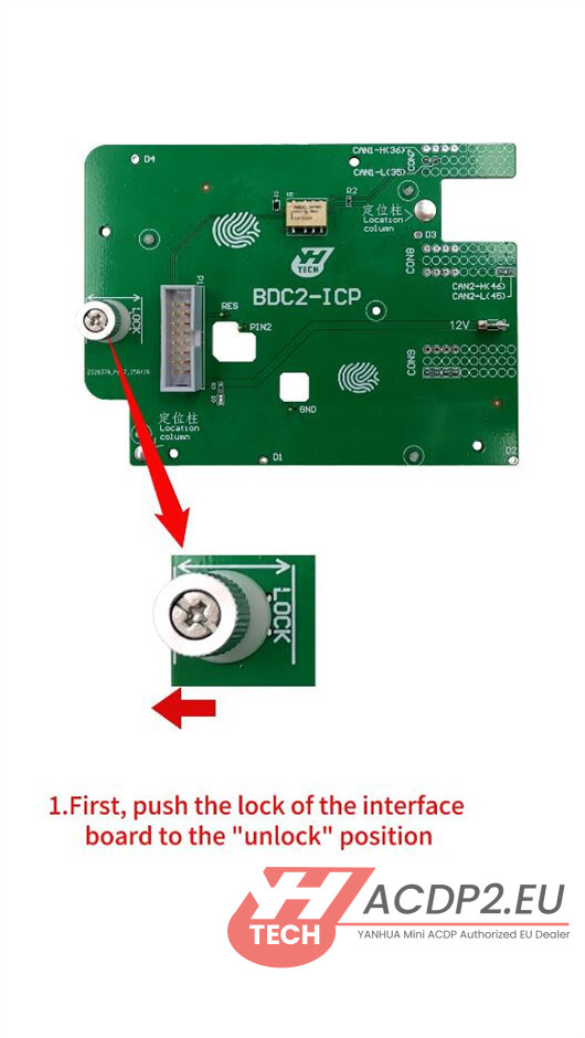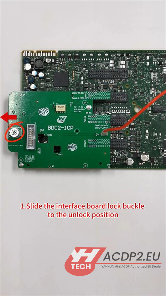 Push the lock switch on the Yanhua ACDP Module 38 interface board to the “Unlock” position.